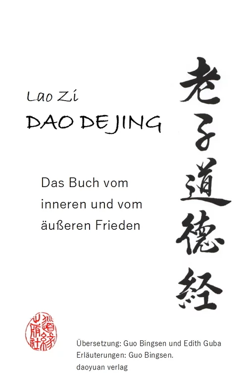 Lao Zi, Dao De Jing - Das Buch vom inneren und vom äußeren Frieden | ISBN 978-3-9809511-8-0 | Erstauflage 2023, daoyuan verlag | Kommentiert und übersetzt aus dem Chinesischen ins Französische: Guo Bingsen; in Kooperation mit diesem übersetzt aus dem Französischen ins Deutsche: Edith Guba.