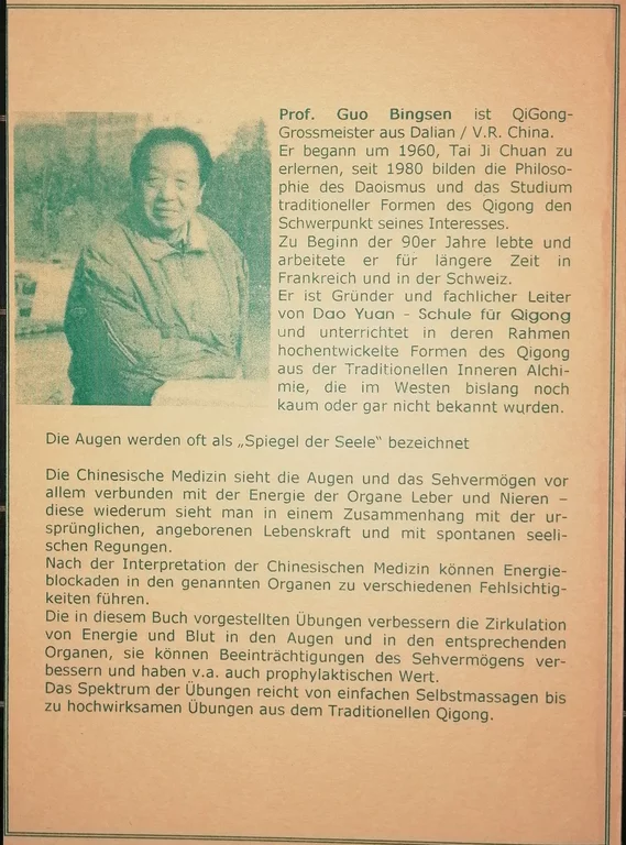 Dao Yuan Qigong, Qigong aus buddhistischer und daoistischer Tradition | Guo Bingsen und Edith Guba | ISBN 3-9809511-0-3 | Die erste und bisher einzige Auflage im daoyuan verlag erschien 2004.